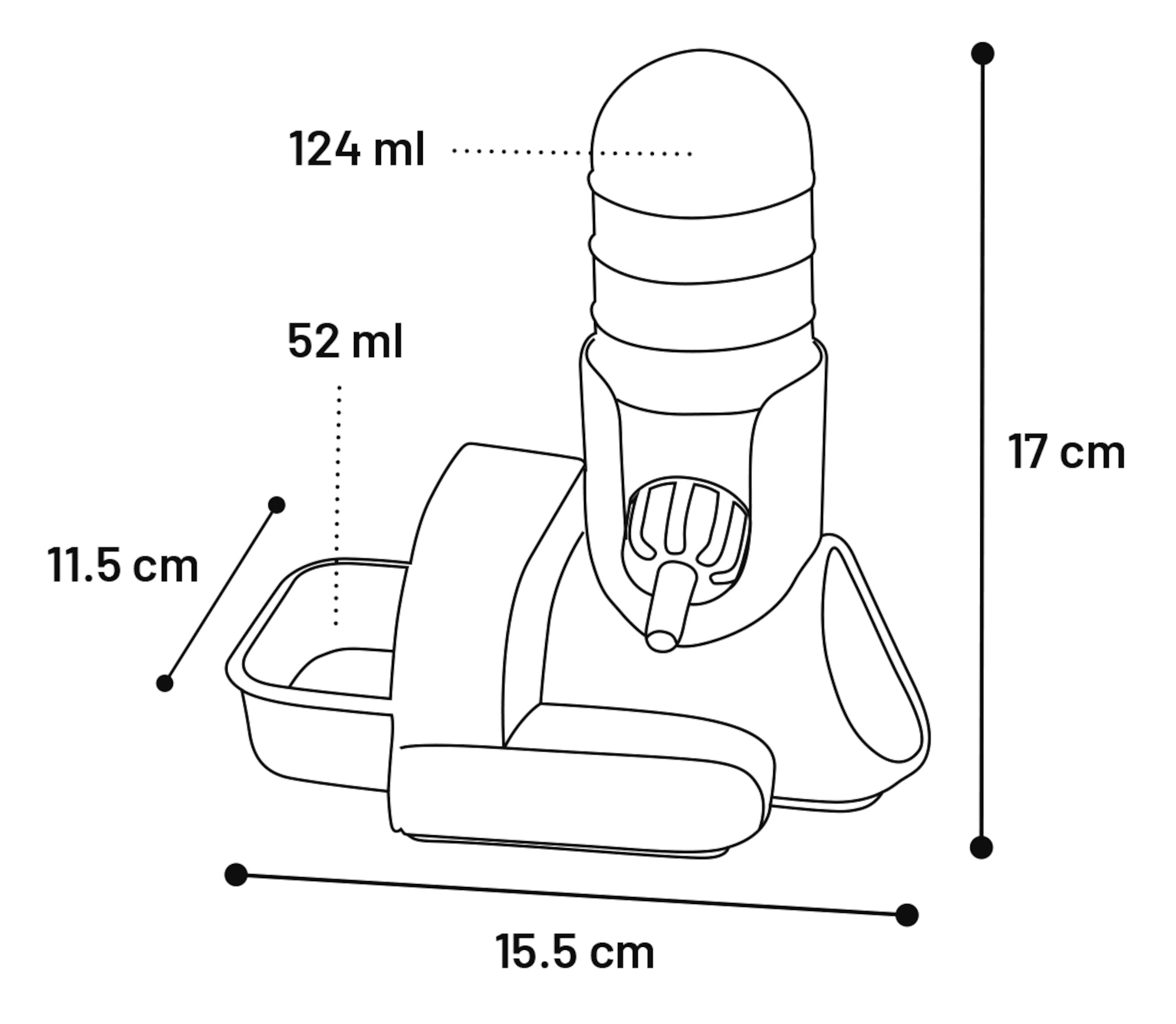 - 3 in 1: feeding bowl with drinking bottle and shelter