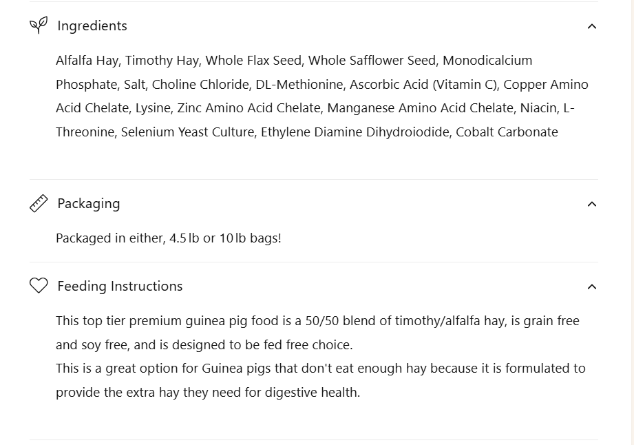 • This formula uses whole natural ingredients and supplements to provide complete and balanced nutrition that covers all of your guinea pigs needs. This includes: